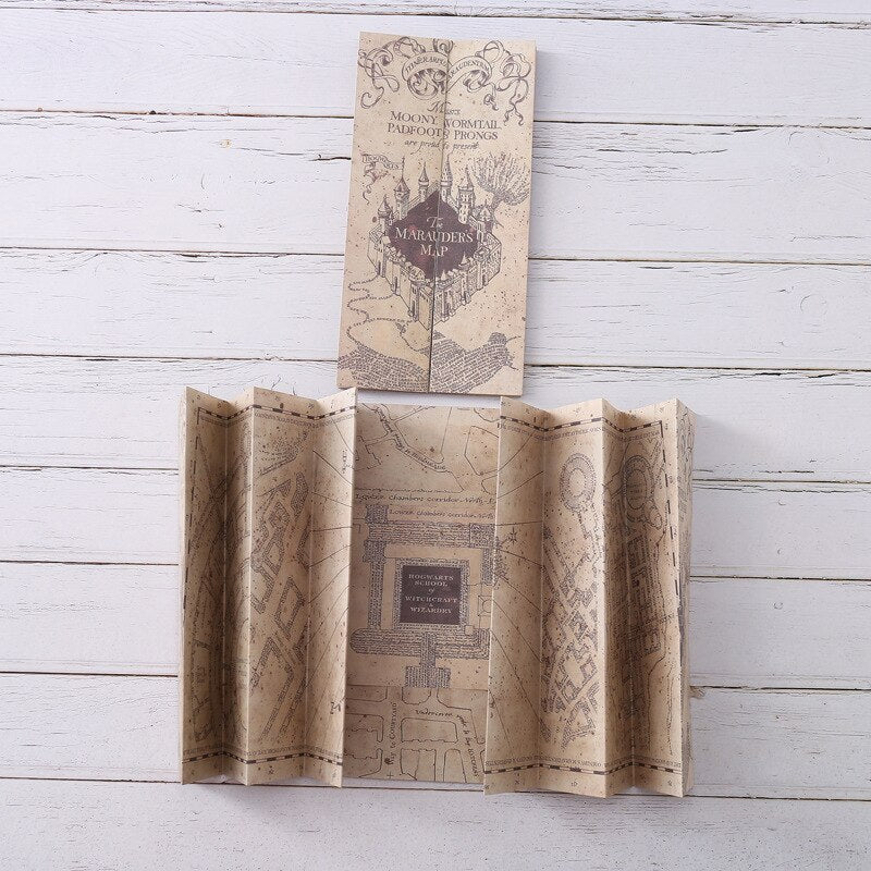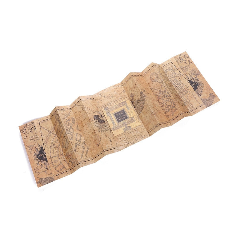 The map includes all secret passages that are hidden as well as the location of every person in the Hogwarts grounds. The folded map measures 47cm high and 22cm wide when closed, opening to a length of 183cm. Mischief managed!